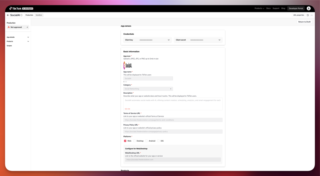 Note: you have to submit for review for your application to the Tiktok and need to proper business identification