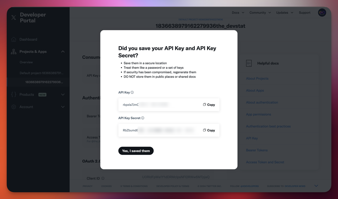 - After Setup the informations you will redirect to this page and copy the Client Id & Client Secret